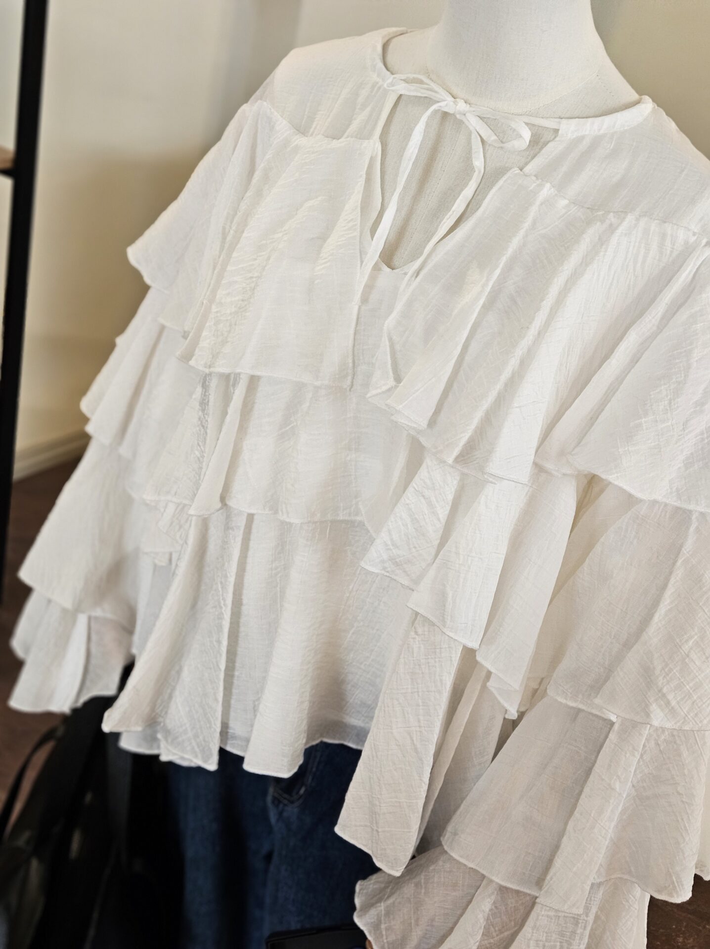 Valge volangidega pluus
