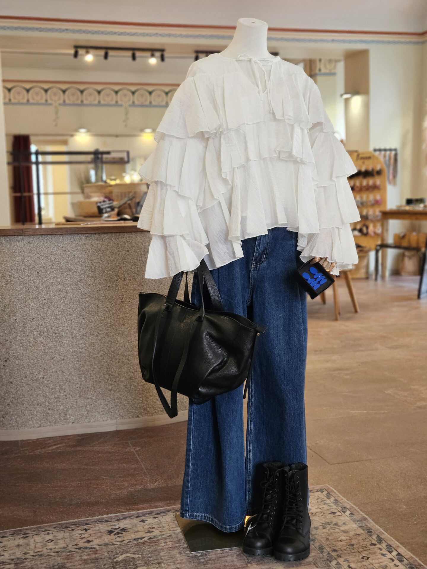 Valge volangidega pluus kogus